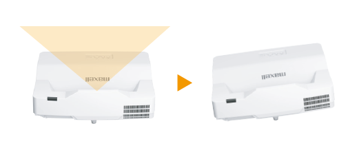 本投影机配备超短焦投射镜头,可在69cm 的距离投影出100 英寸的图像(55cm 投射80 英寸)。 超短焦投射可大大减少投影机眩光,更便于老师或演示者看到观众。 同时因老师或演示者的手和身体产生的阴影较小,观众也有一个更清晰的视角, 从而教室或会议室里的每个人都能得到较好的影像体验。